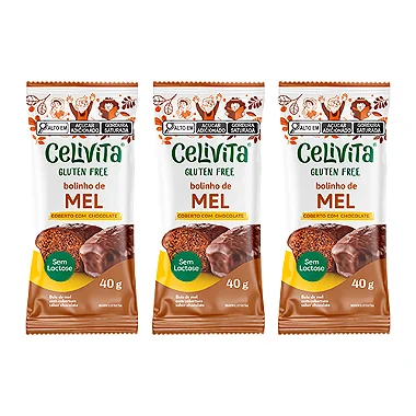 DISPLAY COM 12 BOLINHOS DE MEL COBERTO COM CHOCOLATE 40g